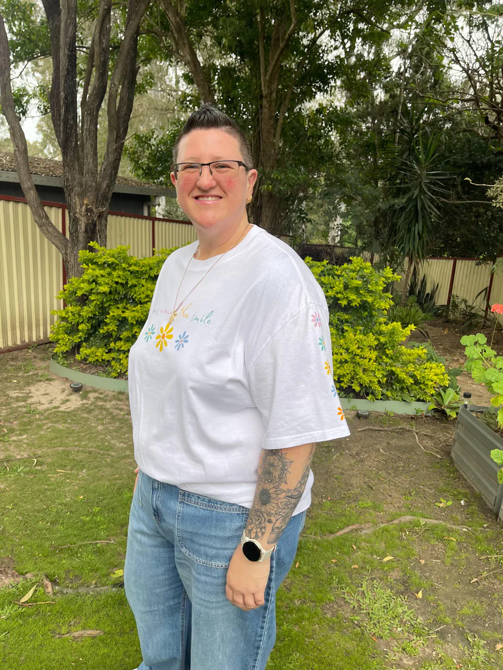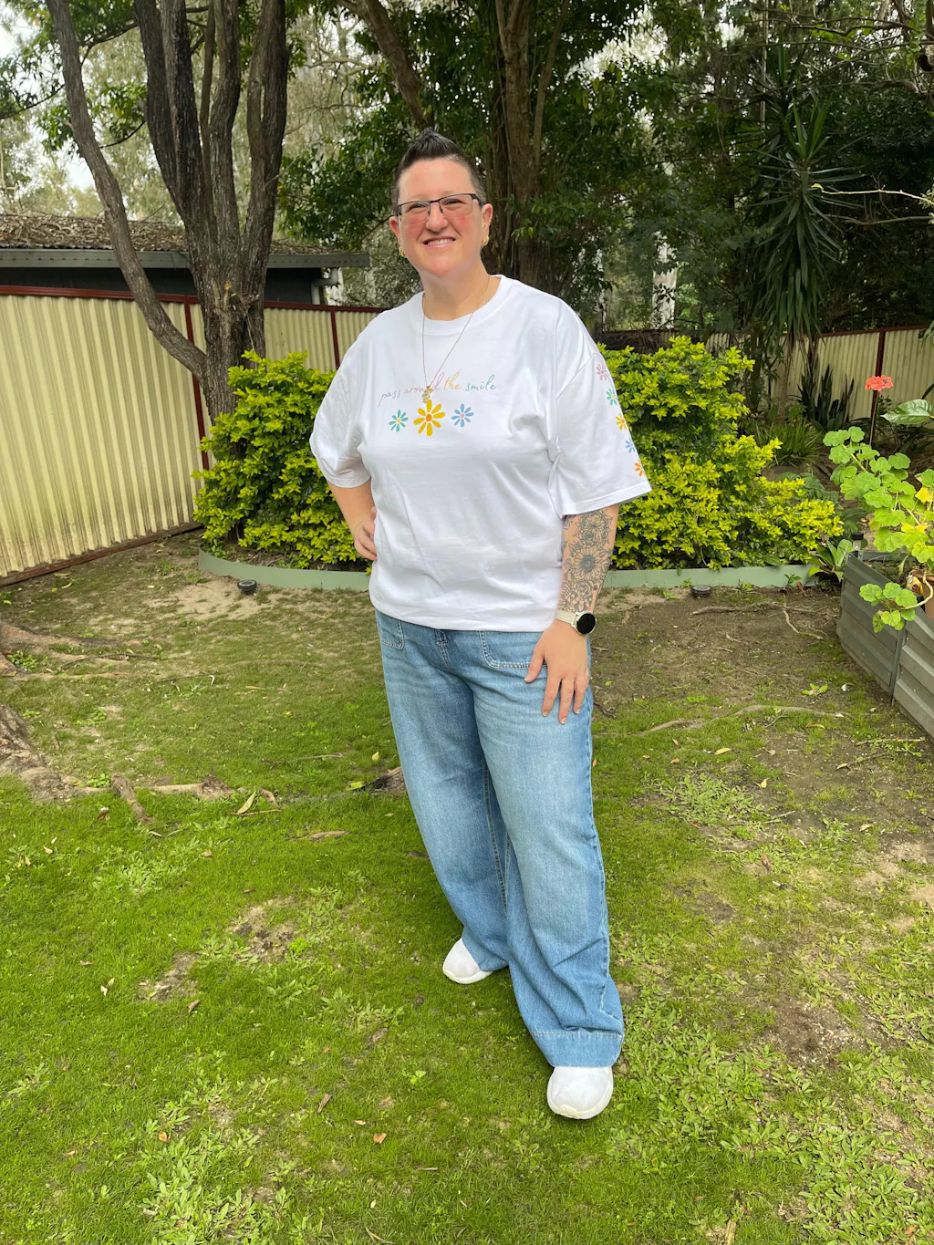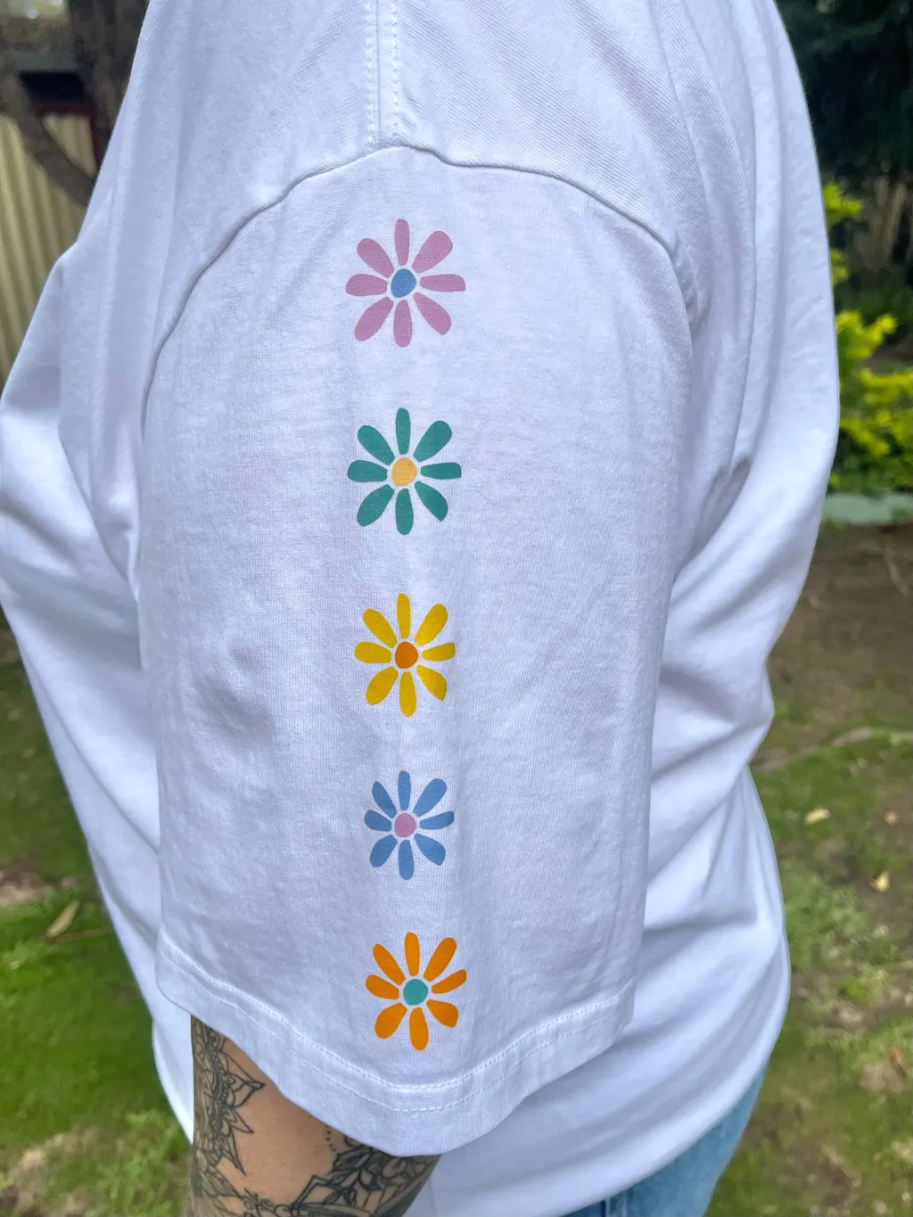 Here you'll find the adult sizes for our Rainbow Bloom Tee!